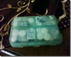 sebelah kiri ialah ubat beliau dalam sehari, terbahagi kepada pagi, tengahhari, petang dan malam.